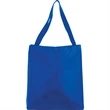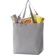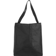 Perfect alternative to plastic bags. Open main compartment with snap closure. Laminated material is water-resistant and easily wipes clean. 9.5" drop handles.