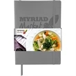 Elevate your brand with this semi custom bound journal. Features a built in elastic closure, ribbon page marker, document pocket on back cover and 80 sheets of cream lined paper. Customizable full color graphic wrap and oversized blind deboss decoration included in pricing.